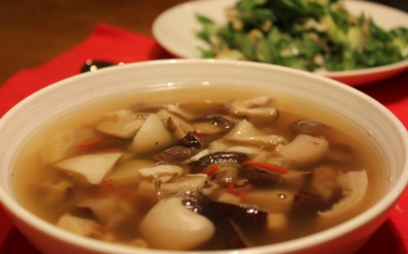 Неисчерпаемое количество вариантов супов из грибов объединяют лёгкость и простота в приготовлении, нежный вкус, неповторимый аромат. Суп, сваренный на курином бульоне, получается удивительно вкусным, а ложка сметаны, сливок или майонеза, добавленная при подаче готового блюда, моментально исправит цвет, превратив чёрный грибной отвар в белый, хорошо смягчит вкус, увеличит питательную ценность.
