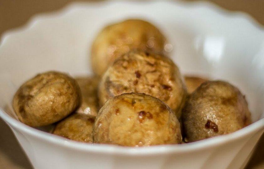 Заготовку из морозильной камеры перемещают на несколько часов в холодильник, затем достают и доводят до нужной кондиции при комнатной температуре. Сушеные плодовые тела с картофелем перед запеканием в духовке заливают теплым молоком и оставляют на 5-7 часов. На выходе получается сочное, вкусное и ароматное блюдо.